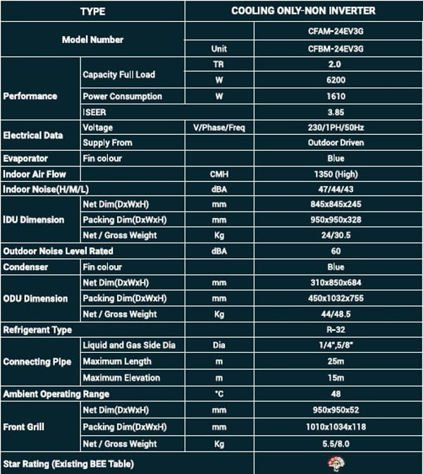 Unit Type | Cassette Non Inverter Air Conditioner |