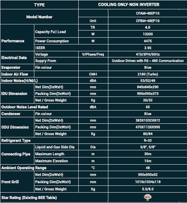 Akabishi CFAM-48EV1G Cassette Air Conditioner Non Inverter 4 Ton 1 Star