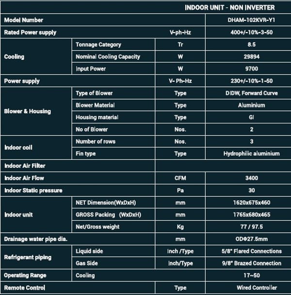 DHAM-102KVR-Y1 Ducted Air Conditioning 8.5 Ton Non Inverter