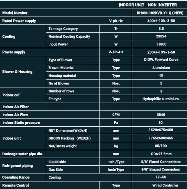 DHAM-102KVR-Y1Q Ducted Air Conditioner 8.5 Ton Non Inverter New Model