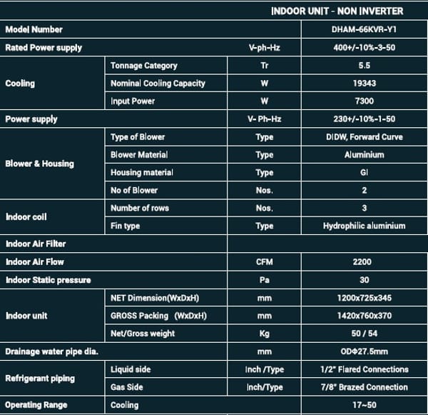 DHAM-66KVR-Y1 Ducted 5.5 Ton Air Conditioner Non Inverter