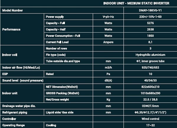DMAY-18KVG-Y1 Ducted 1.5 Ton Inverter Air Conditioner India
