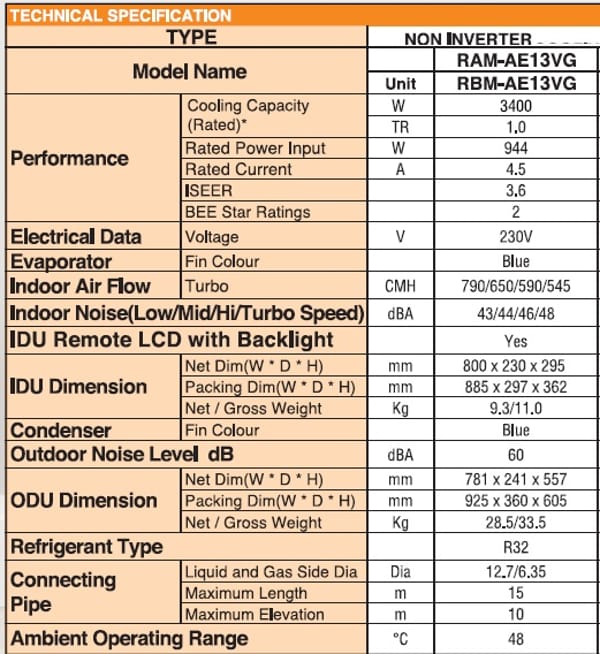 Akabishi 1.0 Ton 2 Star Non Inverter Ac Technical Information for buyers